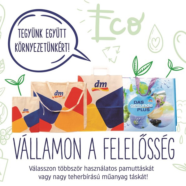 A dm a fenntartható fejlődés egyik alapelvét, a környezettudatosságot fontosnak tartva igyekszik vásárlóinak háztartási hulladékait is csökkenteni, s arra ösztönözni őket, hogy többször használható táskát vegyenek igénybe bevásárlásaik során.
